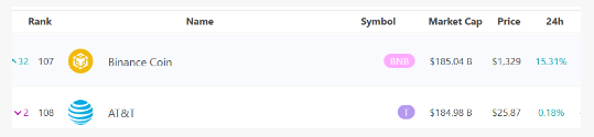 BlockWeeks 10月13日消息,据8MarketCap最新数据显示,BNB市值已突破1850亿美元,现报1850.4亿美元续创新高,24小时涨幅15.31%,目前已超越拼多多(1764.1亿美元)、澳洲联邦银行(1077亿美元)和AT&T(1849.8亿美元),升至全球资产市值排名第107位。