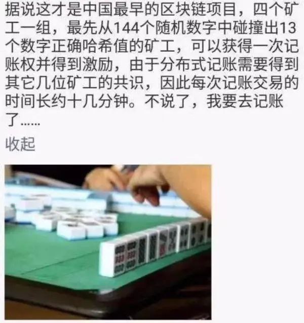 麻将,才是中国最早的区块链项目 1001 2周前 综合讨论 57 据说麻将才是中国最早的区块链项目,四个矿工一组,最先从144个随机数字中碰撞出13个数字正确哈希值的矿工,可以获得一次记账权并得到激励,由于分布式记账需要得到其它几位矿工的共识,因此每次记账交易的时间长约十几分钟。不说了,我要去记账了…. 回复 我来回复 暂无回复内容 请 登录 或者 注册 后回复。 相关问题 Solana 基金会主席要来清华论坛演讲了? 1周前 0 112 币圈人人都想做dex,因为这玩意是真的赚钱。 1周前 0 42 欧易OKX开除X Layer 1号员工,真相是什么 ? 5天前 0 64 被加密货币骗的人多吗? 2周前 0 51 以太坊价格已经超越黄金,1ETH=1盎司黄金 1周前 0 24 玩虚拟币赚了几十万合法吗 2周前 0 73 黄金价格暴涨,为什么数字黄金BTC没有涨? 2周前 0 43 HashKey金狗团队招募链上科学家 1周前 0 47 Solana基金会主席正式在清华演讲 1周前 0 77 $slerf 树懒代币价格暴涨,炒作币安下架概念? 2周前 0 84