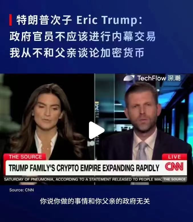 特朗普小儿子接受采访的时候说,政府官员不应该进行内幕交易,他从不和父亲讨论加密货币。这话谁信?