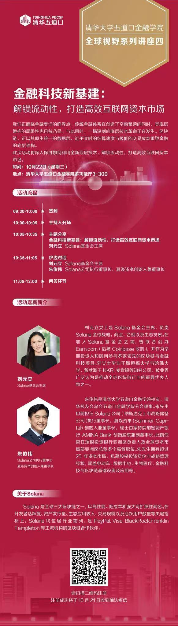 据网传消息,Solana 基金会主席 Lily Liu,微策略公司董事长 Junwei Zhu,即将出席清华大学金融学院讲座