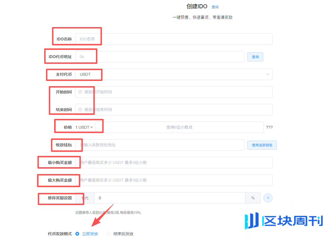 代币发放模式:一共有两种,立即发放或结束后发放