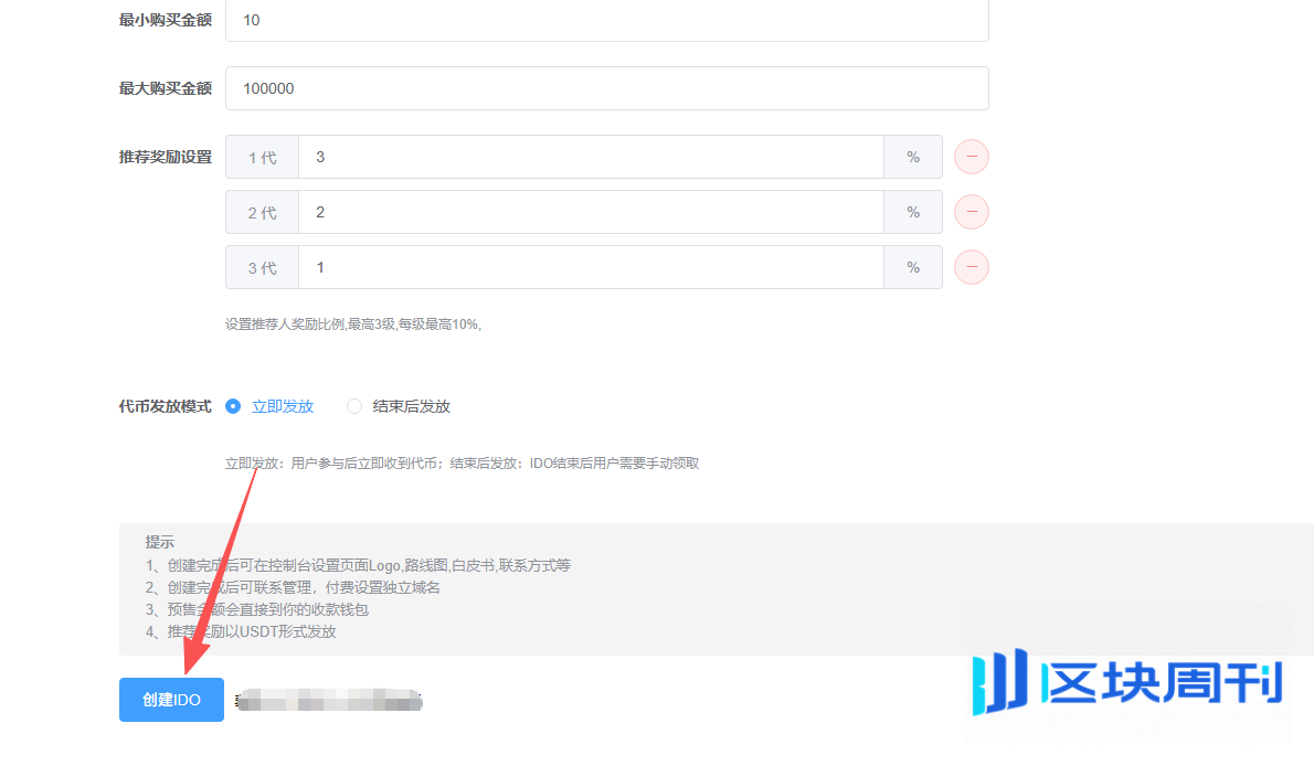 结束后发放:指的是整个IDO预售结束后,用户登录IDO网站手动领取
