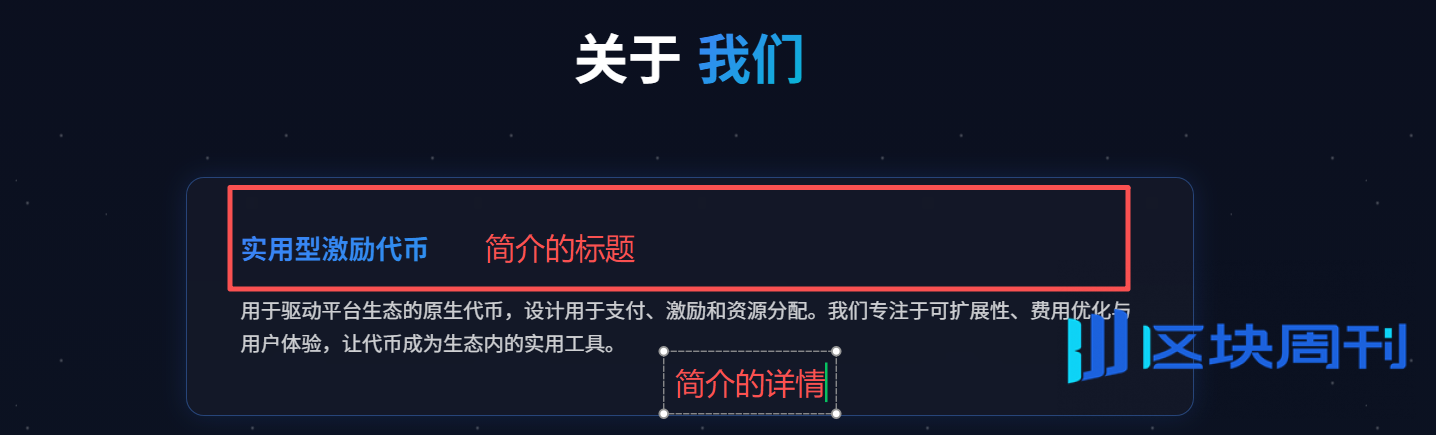 修改首页信息:一句话总结你的项目,网站首页、代币名称下面的文案