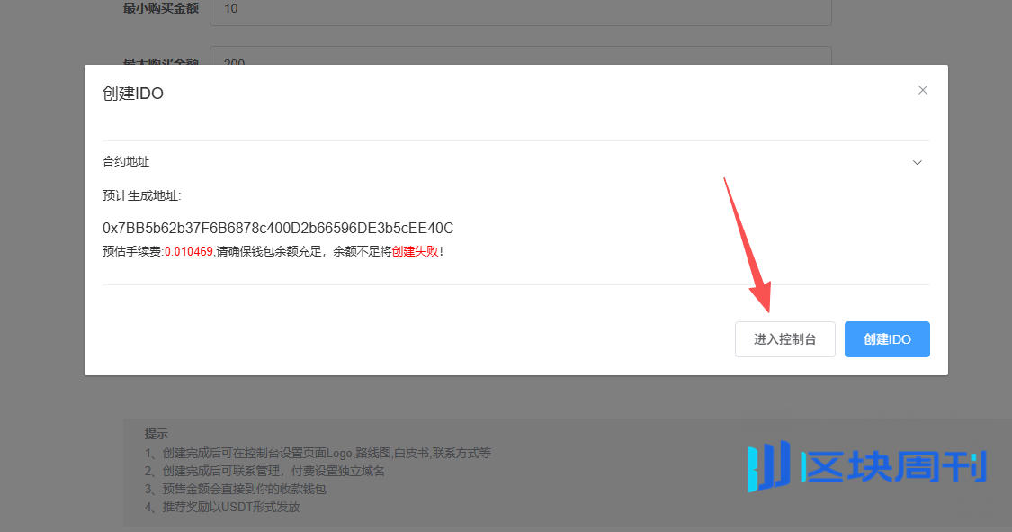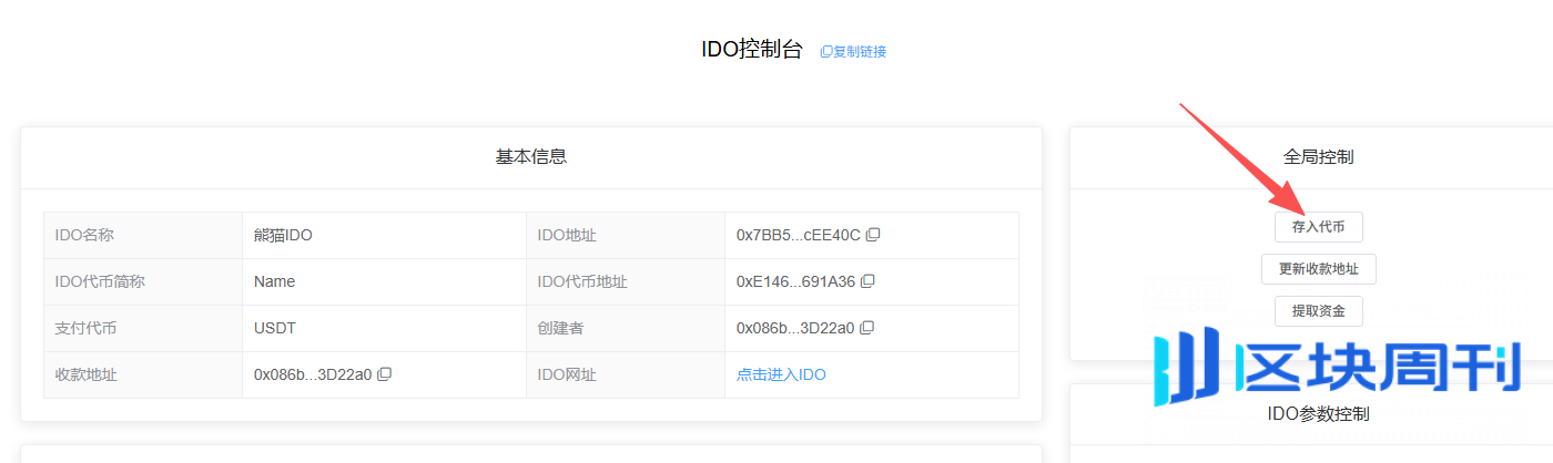第四步:进入IDO控制台存入代币